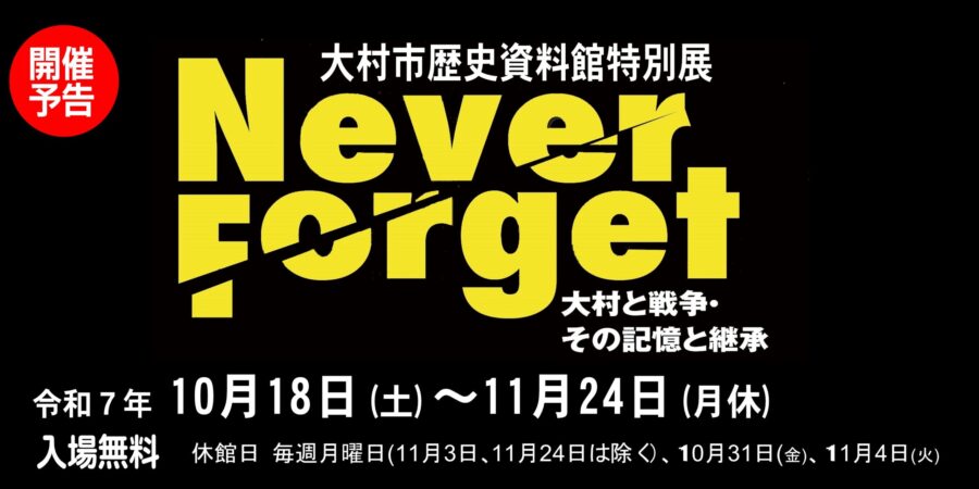 - 特別展「Never Forget -大村と戦争・その記憶と継承-」を開催します