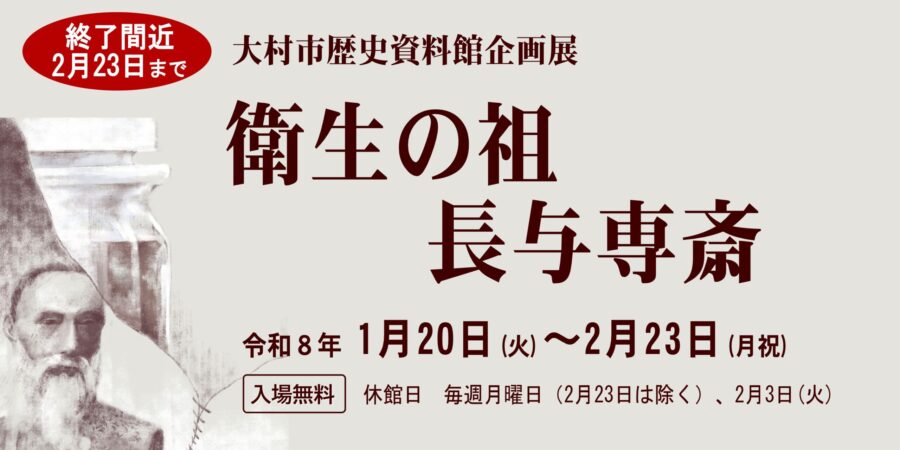 PREV2026年 2月NEXT日月火水木金土12345678910111213141516171819202122232425262728 PREV2026年 3月NEXT日月火水木金土123456789101112131415161718192021222324252627282930311234 休館日 お知らせ一覧はこちら 2026年2月17日 企画展「衛生の祖 長与専斎」いよいよ2月23日まで 2026年2月16日 歴史資料館のメールの送受信の停止のお知らせ 2026年2月1日 ブックトーク「長与専斎」の動画を公開しています 2026年1月22日 大村市歴史資料館 展示解説シート 2026年1月20日 企画展「衛生の祖 長与専斎」を開催中 Page 1 of 41234» フロアマップ 企画展示室 常設展示室 シアター プロローグ他 所蔵資料DB 刊行物 大村市近代資料室
